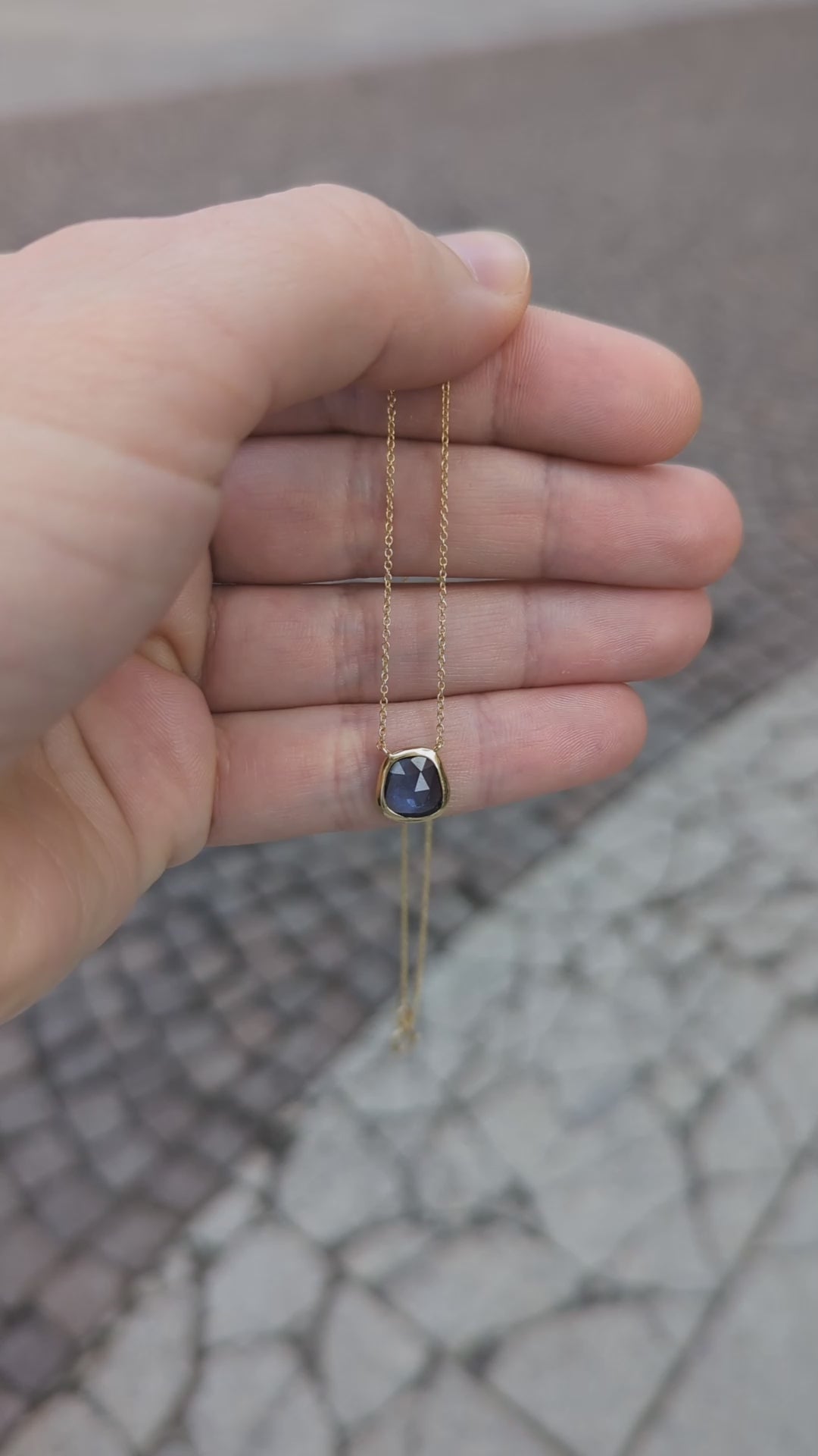 Girocollo in oro giallo 18 carati con uno Zaffiro 'rose cut' da 2,05 carati, heat treated, montato su catena rolò.